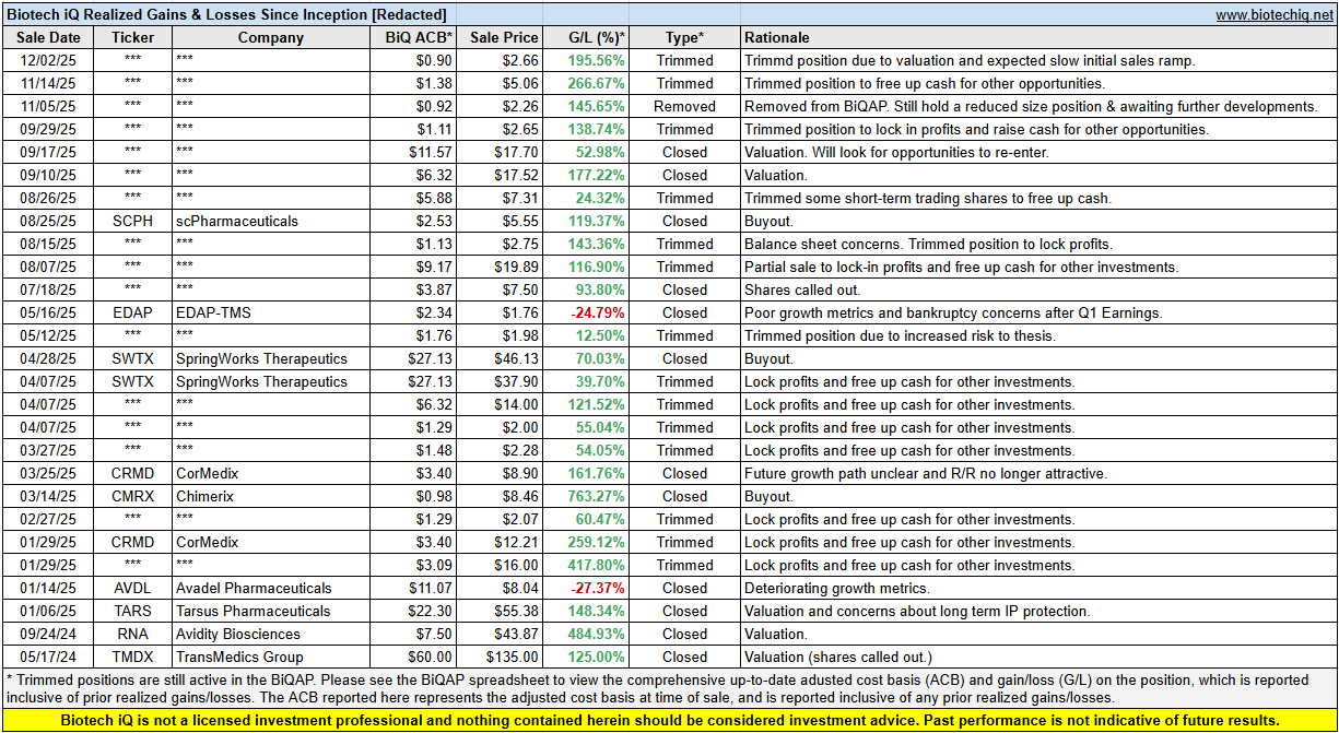 Here's a recap of our realized gains since the launch of BiQ.