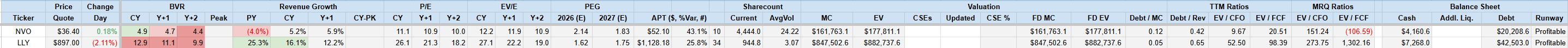 - Finally, while I think NVO has mostly addressed its manufacturing issues, this still remains to be proven. As for the generic competition issue, I think it will affect NVO and LLY equally, so I don't consider it NVO-specific. IMO, the market won't pay a materially higher price for Orforg's dosing convenience just because it still has patent protection. This forces LLY to compete with NVO directly on price, regardless of IP status.