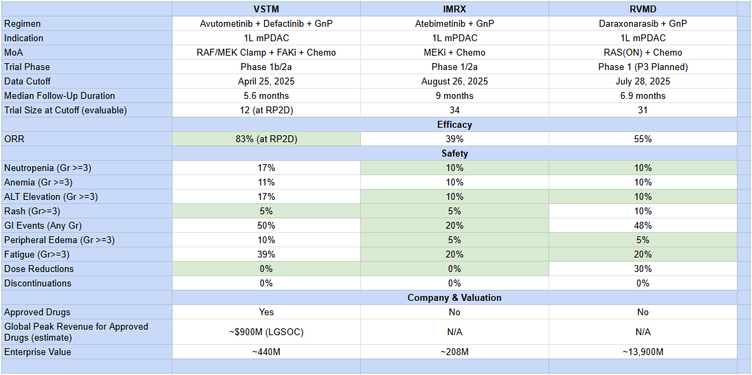 I hope everyone is having a great holiday season! For those of us who still like to think about biotech, even during the Holidays, here's a quick side-by-side comparison of leading clinical-stage candidates for the treatment of 1L mPDAC.