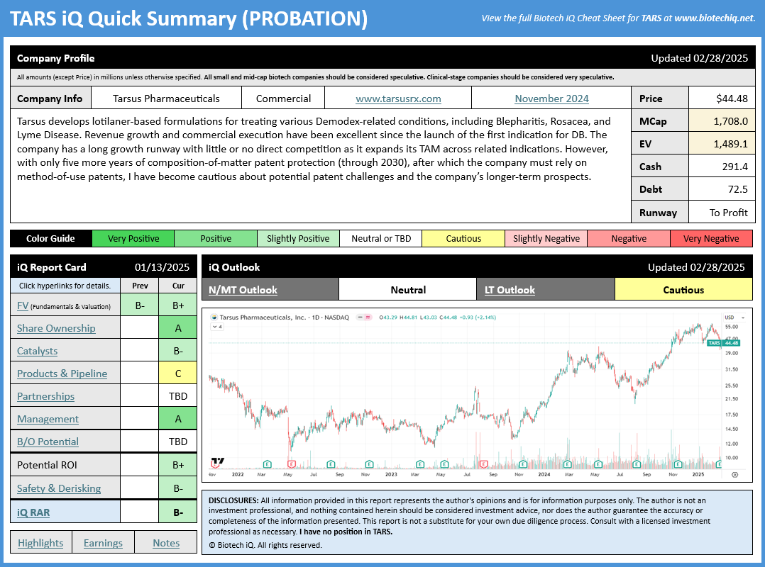 Biotech iQ Cheat Sheet (TARS)